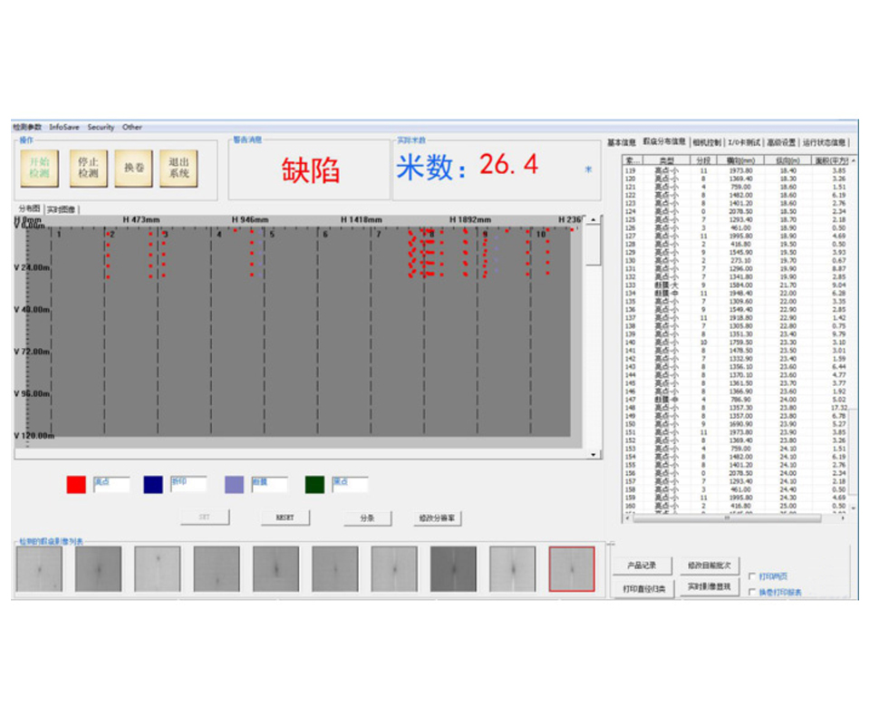 7、检测汇总:系统自动生成无纺布卷材质量报表和疵点分布图表。